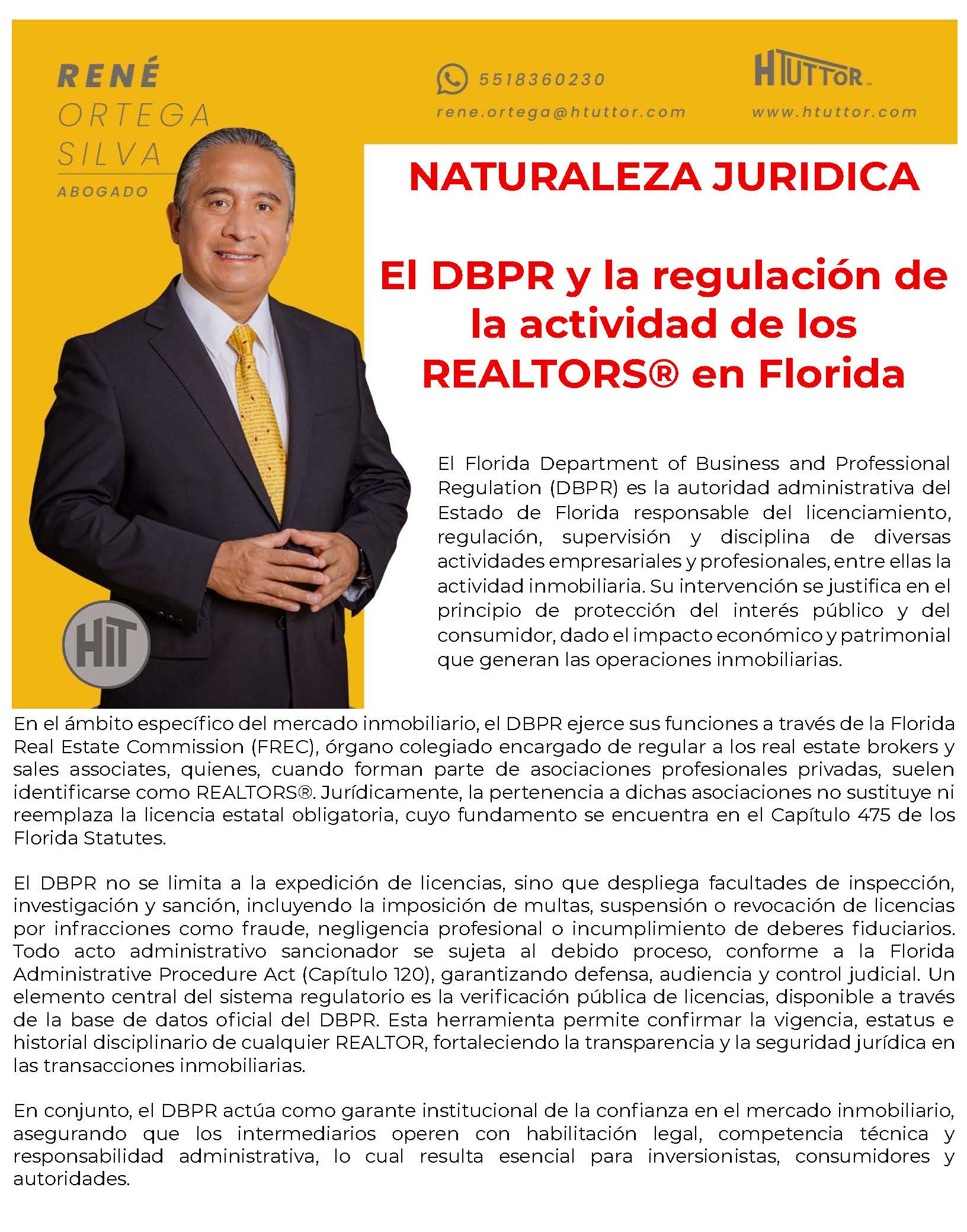 El DBPR y la regulación de la actividad de los REALTORS® en Florida El Florida Department of Business and Professional Regulation (DBPR) …